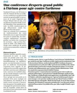 Parce que l’arthrose concerne de nombreux curistes, nous sommes heureux d’être partenaires de cette conférence dédiée à un sujet essentiel : mieux comprendre la maladie et découvrir des solutions concrètes pour améliorer son quotidien. Animée par plusieurs experts (rhumatologue, kinésithérapeute, nutritionniste…), cette soirée permettra d’aborder les moyens actuels pour mieux vivre avec l’arthrose et échanger […]